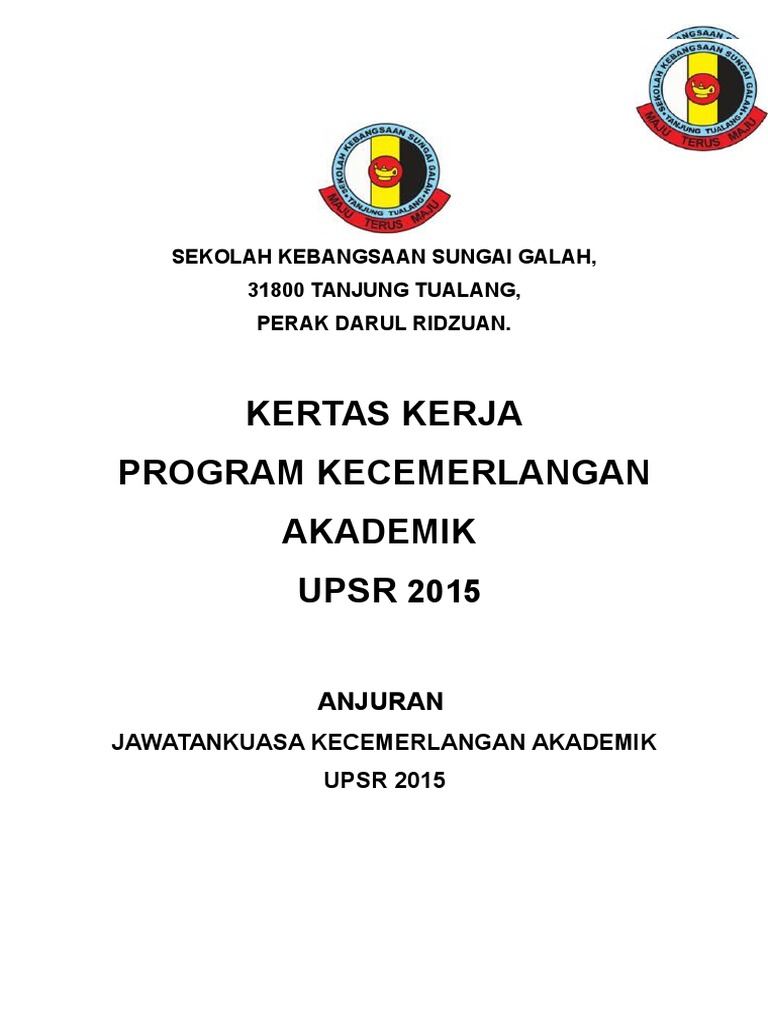 KERTAS CADANGAN PROGRAM KECEMERLANGAN AKADEMIK SK. Berikut merupakan kertas kerja bagi program cemerlang upsr atau lonjakan akademik UPSR yang boleh dilaksanakan di peringkat sekolah.